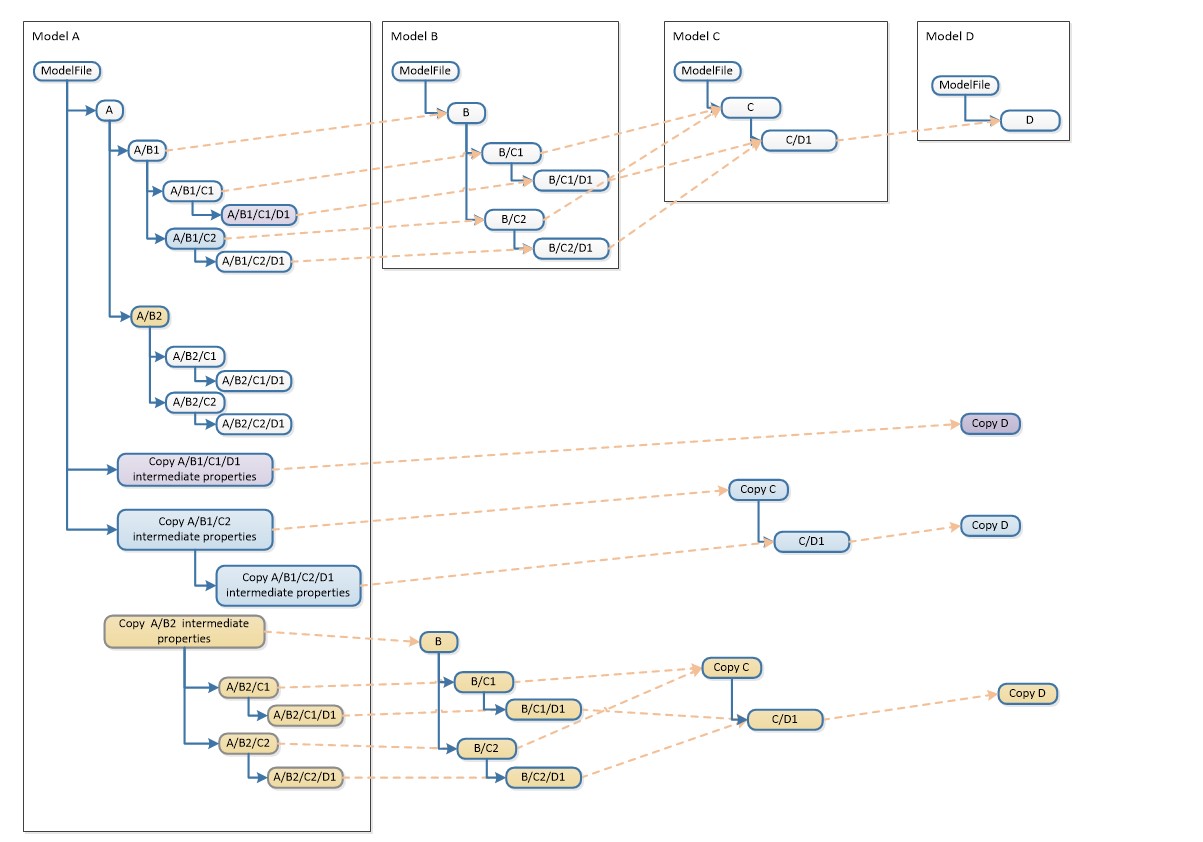 Copy A/B1/C1/D1 + intermediate properties -> Copy D