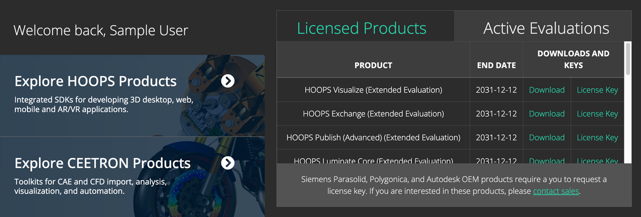 Once you’ve verified your account, click on Product Downloads and then Download HOOPS Access to be taken to the Developer Zone.