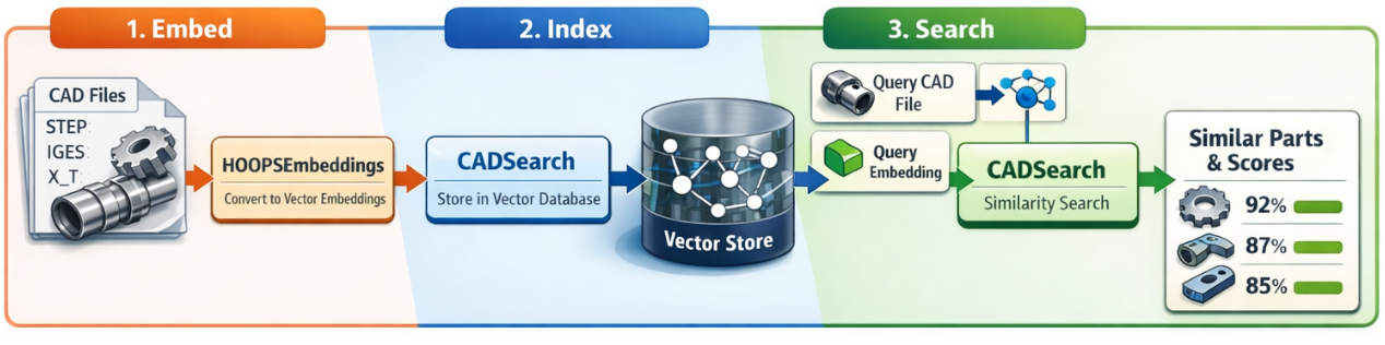 Query CAD file is embedded using the shape_model (HOOPSEmbeddings)
