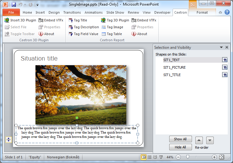 Slide 1: SIT1_TITLE + SIT1_PICTURE + SIT1_TEXT