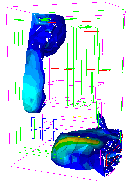 Any number of isosurfaces can be defined and displayed, and various display attributes can be set separately for each one, for instance: