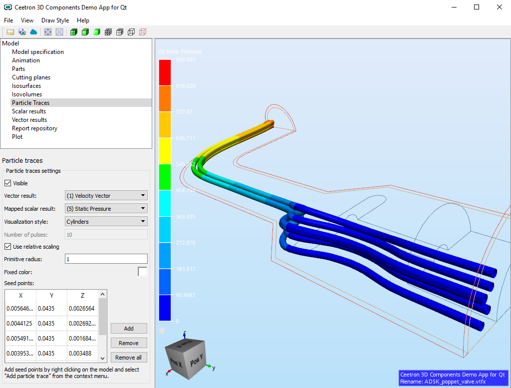 The Qt DemoApp and the WinForms DemoApp both contains example code for creating and manage particle traces. The demo apps also shows how to set up particle trace animation. See the Examples folder in the distribution.