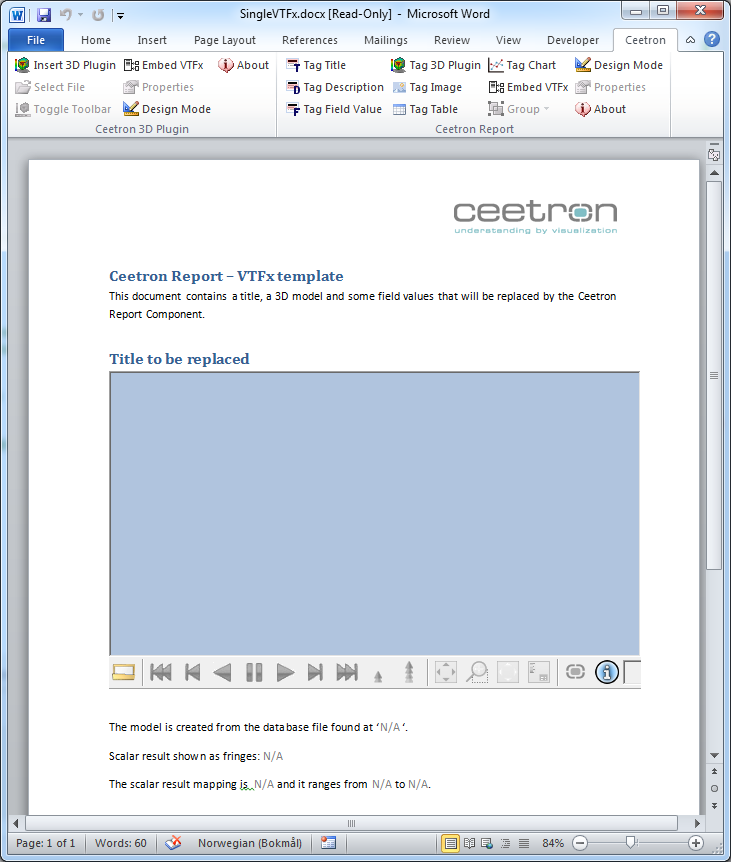 In this tutorial we are using a memory file. This file will be embedded into the Word document and the user don’t need to worry about the path to the VTFx file being broken. It’s all there inside the Word document. Just share it!