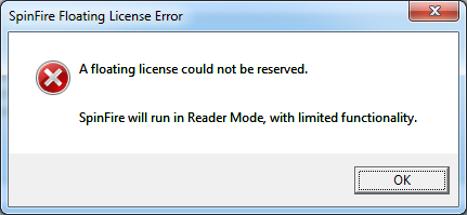 If the activation fails, the following error message appears indicating that the application is in Reader Mode. Verify that the server name and MAC address are correct and try again.