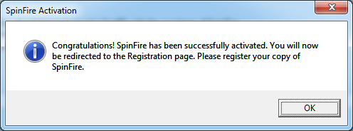 If activation is successful, you will be directed to the SpinFire Ultimate registration page.