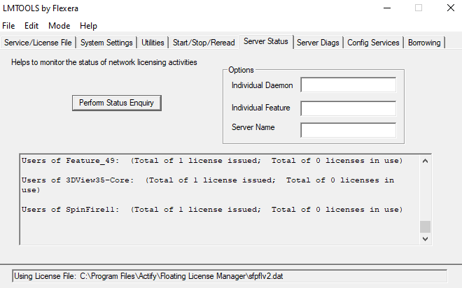 Click the License Server Status button to see the number of licenses used and when the license was taken.