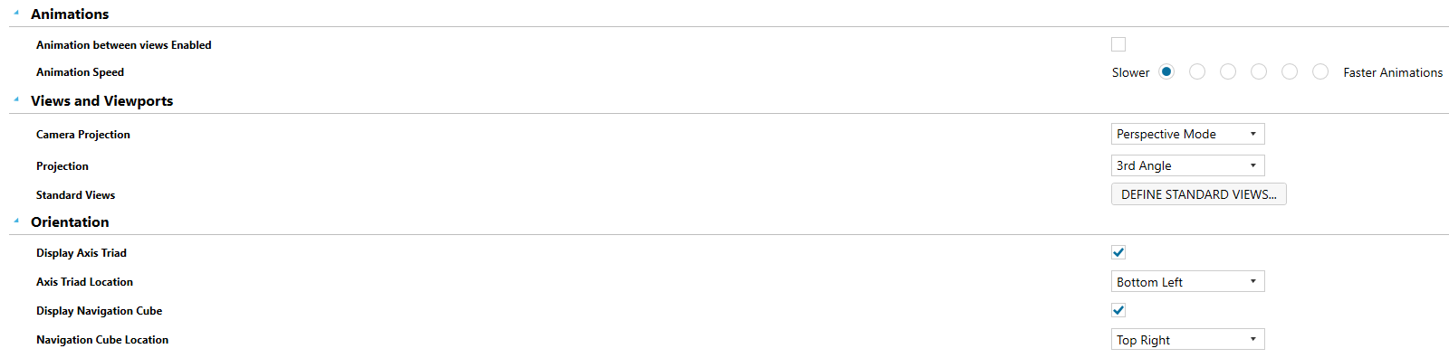 Projection - Determines the orthogonal projection method used when the model is displayed in 4 Viewport and 3+1 viewport modes.
