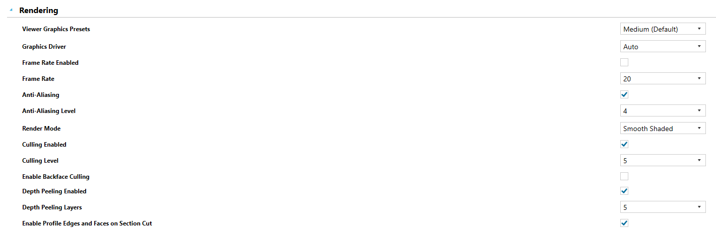 Depth Peeling Layers - Indicates the number of layers of overlapping transparency used when drawing objects. The smaller the value, the better the performance.