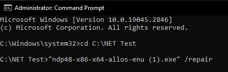 First try to install the latest .NET Microsoft .NET Framework 4.8 offline installer for Windows - Microsoft Support. If already installed with the latest, proceed to point b.