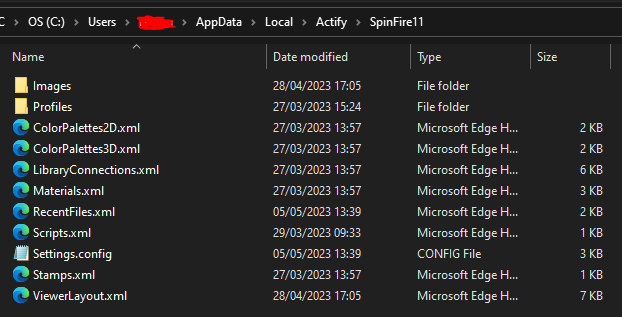 These are stored in your Window’s Userprofile. Then reopen SpinFire which will regenerate fresh copies of all these files. C:\Users\ YOUR_USERNAME_GOES_HERE\AppData\Local\Actify\SpinFire11