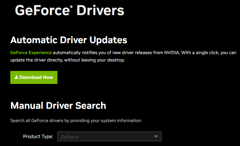 Official GeForce Drivers | NVIDIA. Manually Search for the driver or download the GeForce Experience application to do the driver update on your behalf and for future update updates.