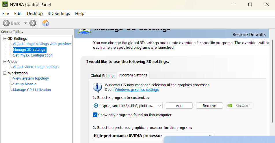 4. Turn On ‘Static Model Enabled’ within SpinFire Application