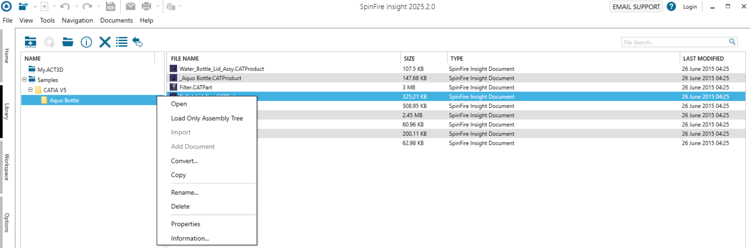 The file you are copying is the actual file that resides in your local system; it is not a copy created by SpinFire Insight. Please use caution when using the Copy, Rename, and Delete commands.