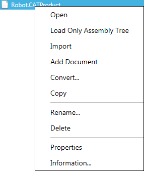Loads the selected assembly file in the Workspace with the assembly tree only.