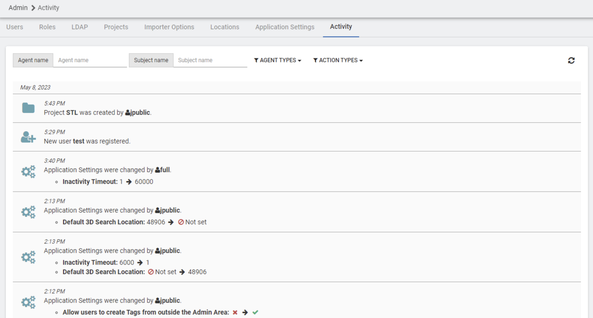You may be interested in specific actions populating the list of activities in the admin area. Filter out actions that do not hold interest with the Filter Action Types menu.