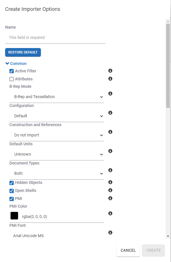An organization may have a need for varying sets of importer options. For example, one division may require greater tessellated data or wireframe information included or PMI information excluded.