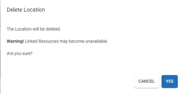 On the Location tab in the Admin Area, click the delete button associated to the Location targeted for deletion.
