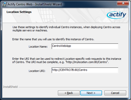 When installing the web application, use the Location dialog during the installation wizard to configure the location of that server.