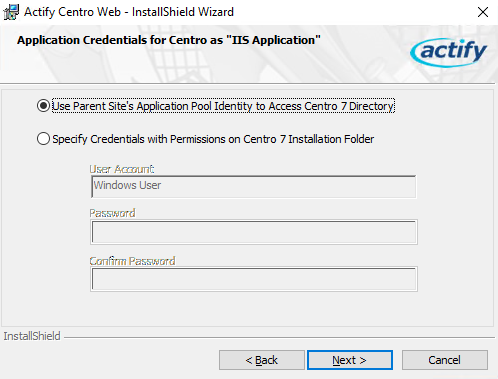 If this is the first time installing SpinFire Manage WebApp, the CentroPool user credentials must be updated. (Updating SpinFire Manage version will retain the user credentials.)