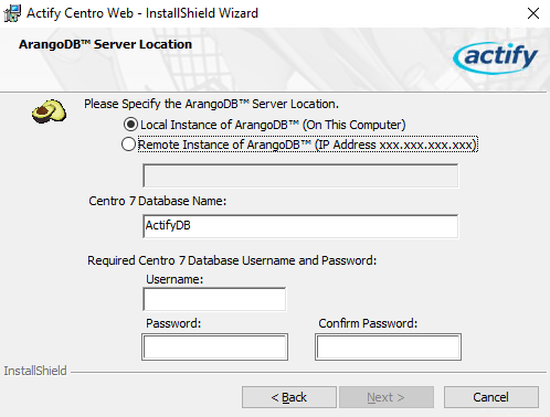 Enter the IP address of the system containing the ArangoDB.