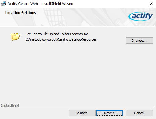 Select the location where uploaded catalog resource files will be stored and click Next.