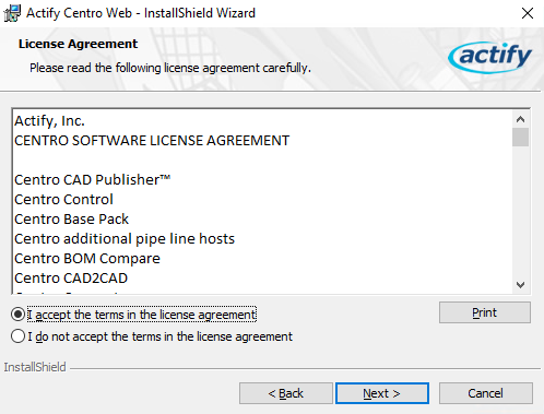Select I accept the terms in the license agreement and click Next.