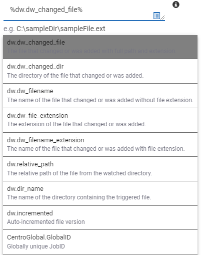 Adynamic property passes information about the file that the current job has found from trigger to actions. You can extract the file name, file path, file extension, and time and date stamps to build a string.