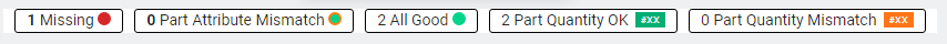 A missing part not only will show the red circle but will indicate this by showing the part name as “MISSING”. The part counts obviously do not match as indicated by their numbers but still show as green.