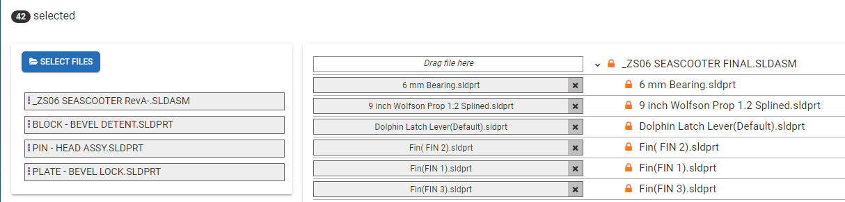SpinFire Manage will automatically match up files based on filename. If it cannot make the association on its own, drag and drop the appropriate file from your check in file list.