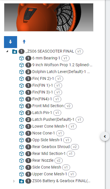 The assembly tree panel allows the user to quickly navigate to different parts and sub assemblies while maintaining a view how parts are related in the assembly.