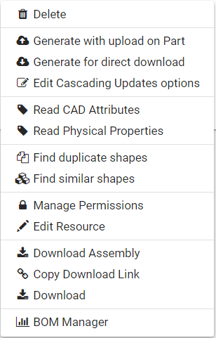 A SpinFire Manage-CAD type resource allows the following additional operations