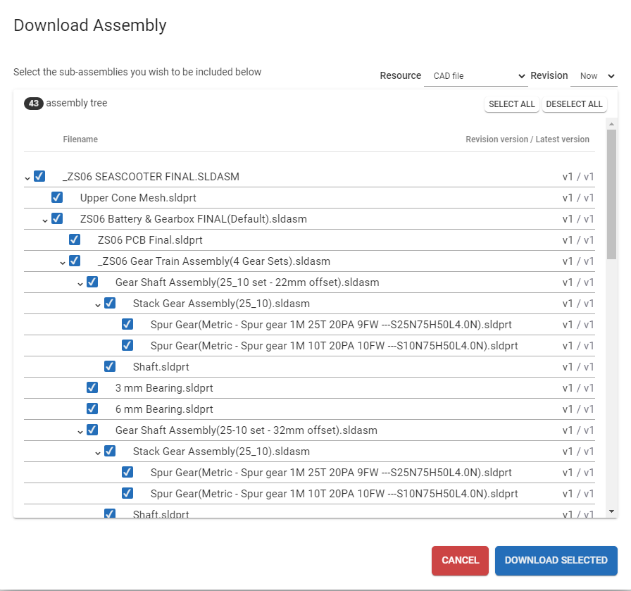 Select Download Assembly to download all the CAD files associated with the assembly rather than downloading them one at a time.