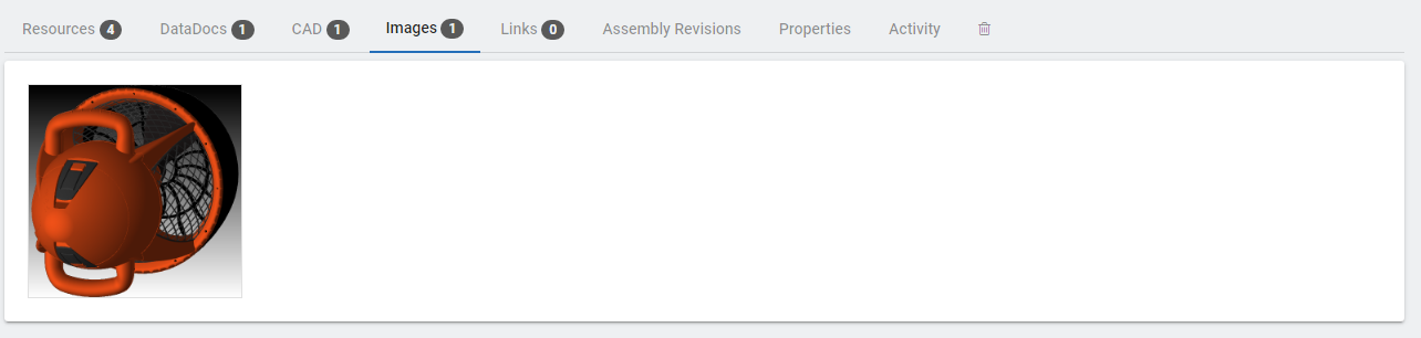 The images tab conveniently lists all the image resources. Download images and select one to represent the catalog part as the chosen thumbnail.