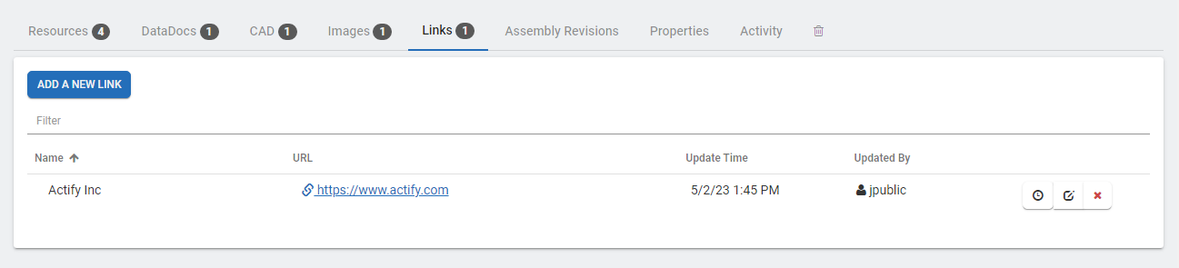 The Links tab contains user defined hyperlinks to share information and to further collaboration.