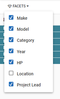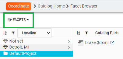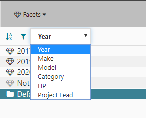 Select/deselect facets from the list to browse. The listed facets are project properties and custom properties.