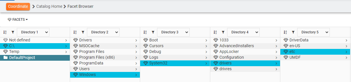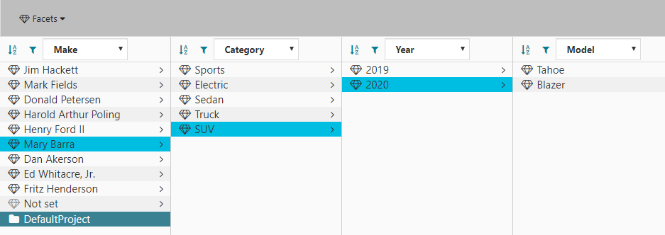 You are now ready to browse. Select the facet from the pull downs at the top of each column.