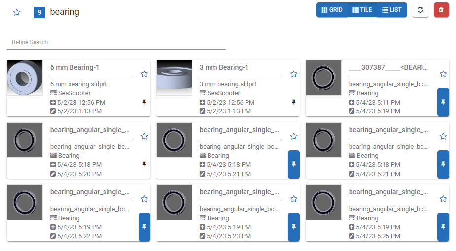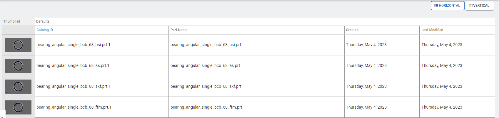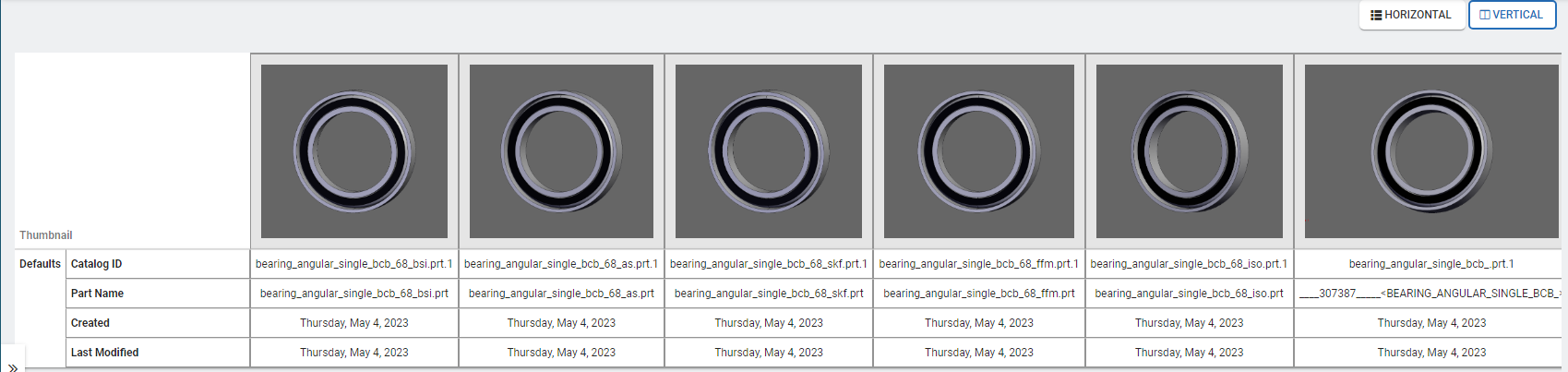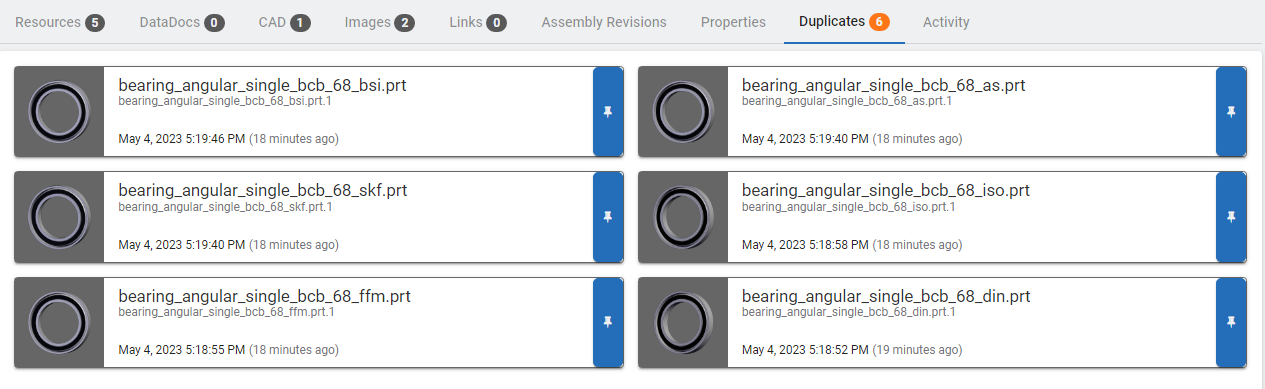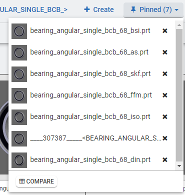 SpinFire Manage lets users “Pin” parts to compare attributes of a set of catalog parts side-by-side via the “pinned” menu.