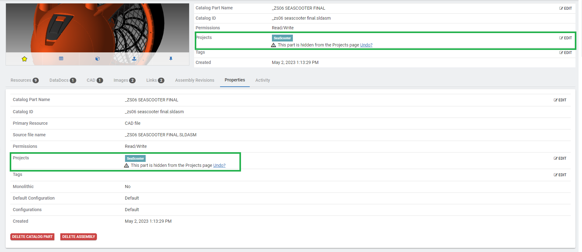 Control the view of parts in projects for your organization by hiding parts on the project list. This can help clarify and keep focus parts and assemblies that need to be worked on and can clear up the clutter of many parts.