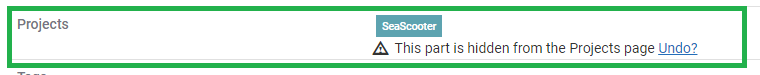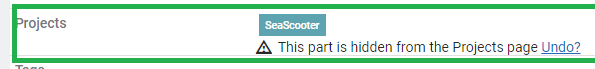 To Hide a Part on the Project Page