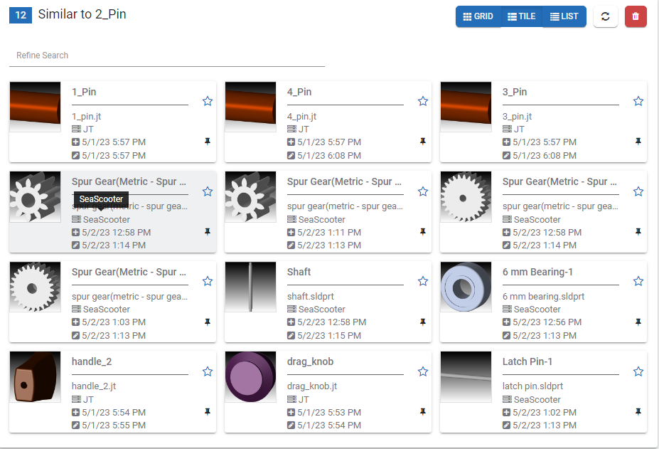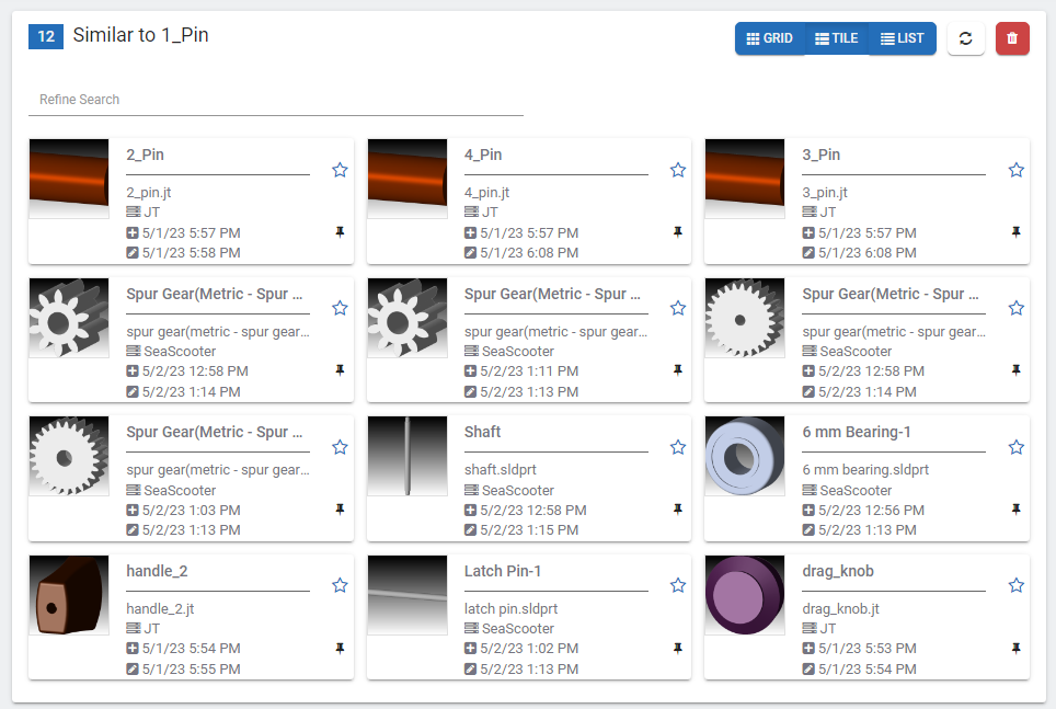 SpinFire Manage adds the ability to compare 3D models based on the geometry of a 3D model. This important feature can help your organization identify duplicate parts and similar parts to help reduce possible waste and redundancy or assist a co-worker to base a structure or design off of a similar model increasing productivity.