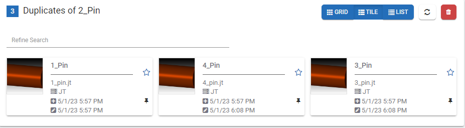 View the duplicates. Click to navigate to any of the duplicate parts.