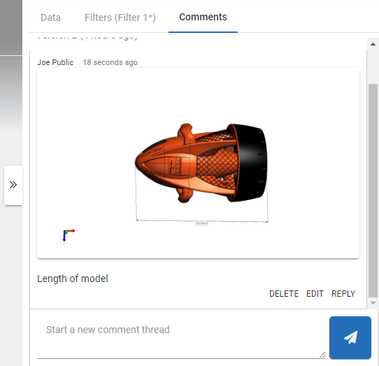 Share images and states (state snapshots), and comments on models in SpinFire Web allowing other viewers to read and reply.