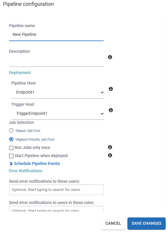 Navigate to the Pipeline Editor by creating a new pipeline from the Pipeline Manager or editing a currently existing one.