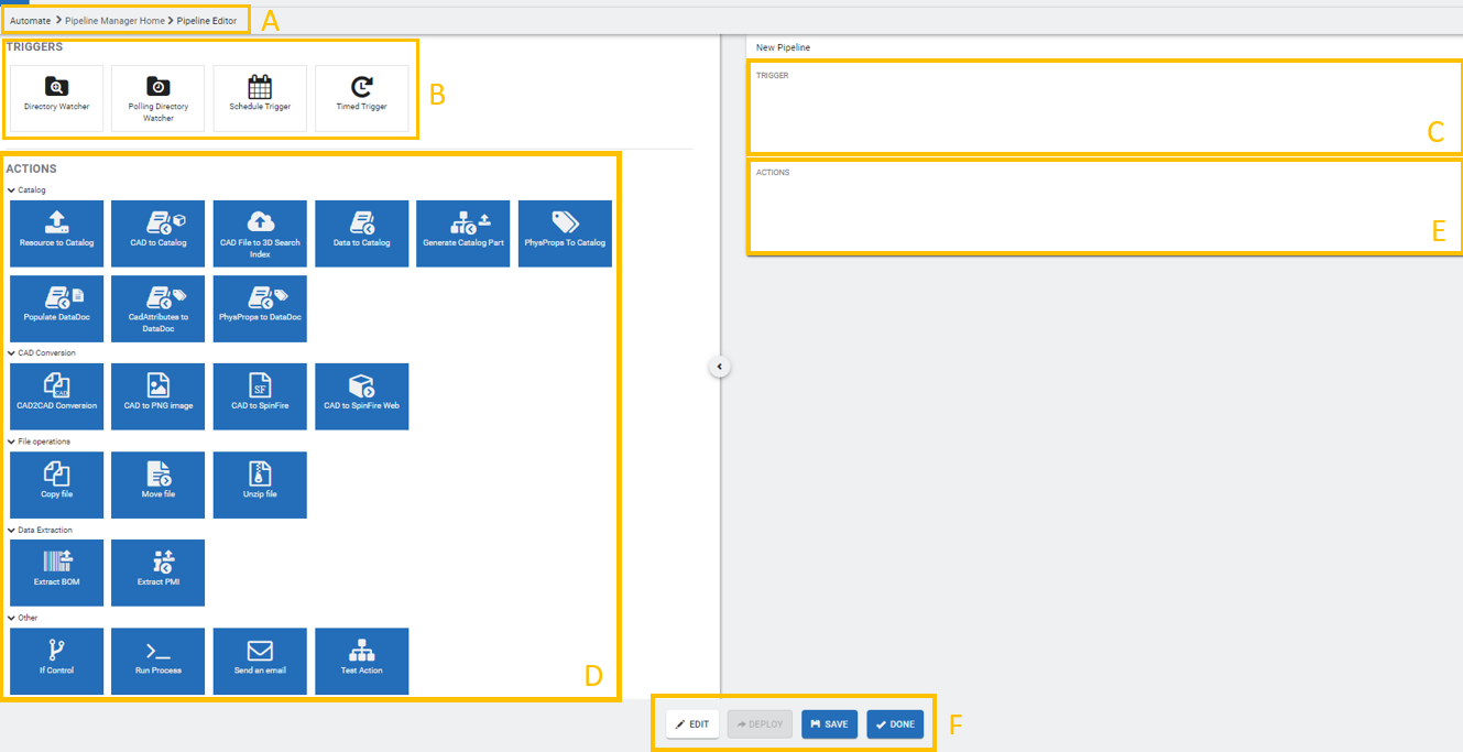 Pipelines are the essential force behind SpinFire Publisher’s flexibility and strength. The Pipeline Editor is a drag and drop interface that allows authorized users to create and edit pipelines.