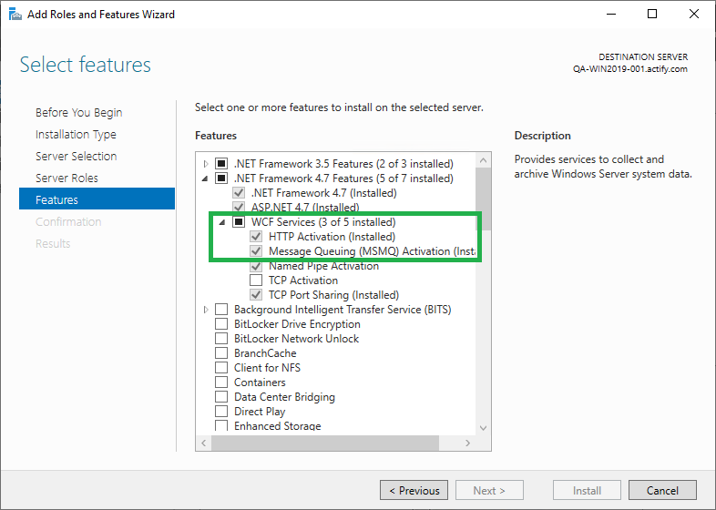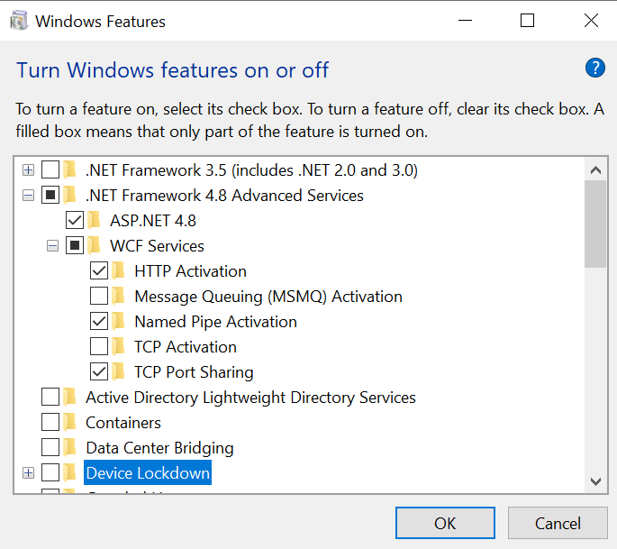 Expand ASP.NET 4.x Check HTTP Activation. Check Named Pipe Activation.![]()
