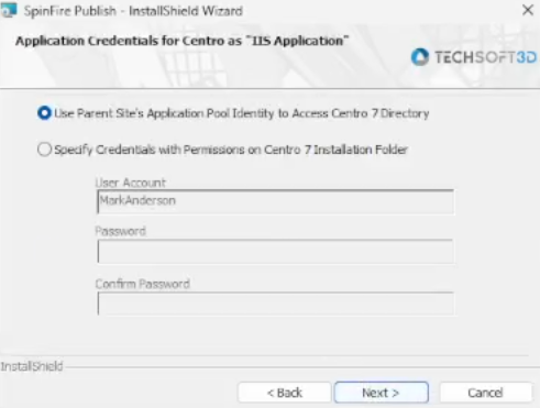 For Application Credentials screen keep using Parent Site’s Application pool as it is, then Click Next.