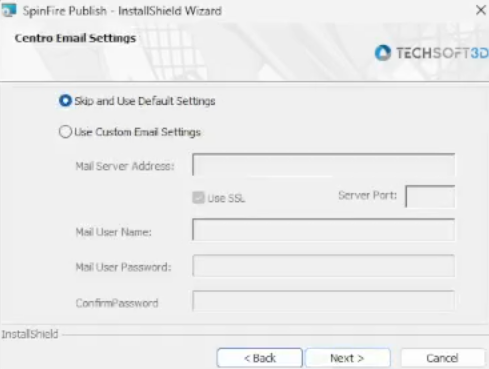 For Email Settings screen, Click Next (This can be configured after the installation)
