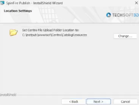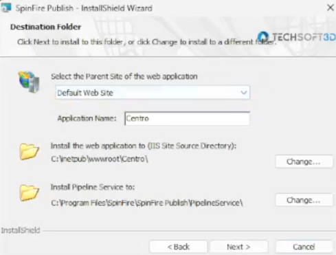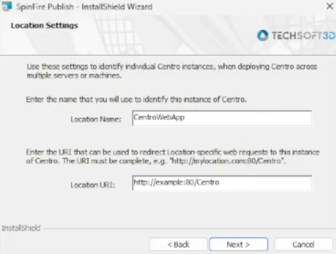 For Location Settings Screen, leave the CentroWebApp as it is and then Click Next.